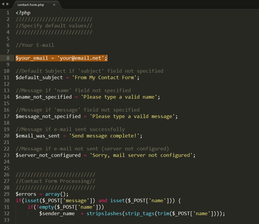 On the screenshot above you can see the basic page structure. Feel free to edit any of the page by opening its corresponding .html file with a code editor.